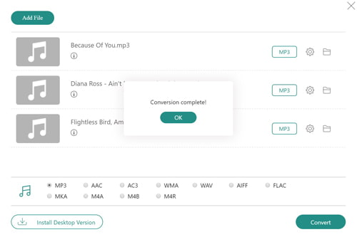 AnyMP4 Free Audio Converter ist die beste Audio Converter App, die komplett im Browser läuft. Egal ob Sie FLAC, WAV, WMA, M4A, OGG in MP3 umwandeln, oder iPhone Klingelton erstellen möchten, ist es mit diesem Tool kinderleicht. Es unterstützt die Konvertierung von fast allen Audioformaten in die gängigsten Formate. Darüber hinaus können Sie Audio aus einer Videodatei extrahieren und in ein beliebiges Audioformat exportieren.