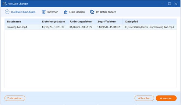 Schritt 2: Klicken Sie auf die Datumsangaben, um sie nach Ihren Wünschen zu ändern. Klicken Sie dann auf "anwenden", um Ihre Datei auf Ihrem Computer zu speichern.